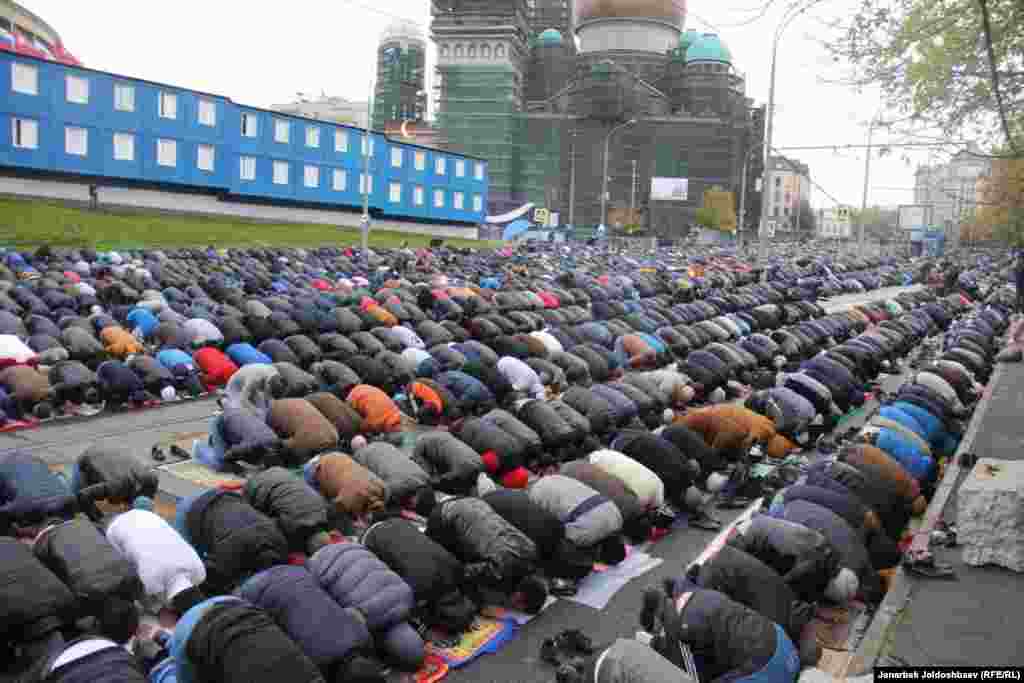 В Москве мусульмане приняли участие в праздничном айт-намазе. Главным местом скопления основной части мусульман на праздник стала Соборная мечеть города Москвы.